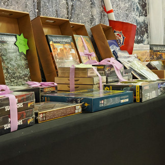 The raffle raised new standards with over £1,700 in prizes and 1,500 tickets sold. We are simply blown away by huge donations from club member Mark Lewis, and Grim Dice which pushed the raffle-pot to heady heights.